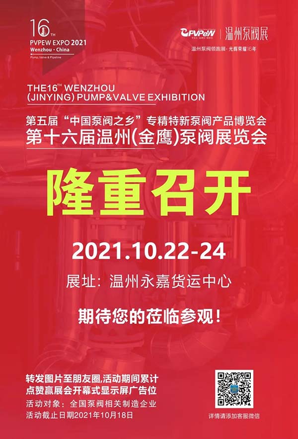 【參觀指南】10月22日第十六屆溫州(金鷹)泵閥展覽會行業(yè)盛會即將啟幕